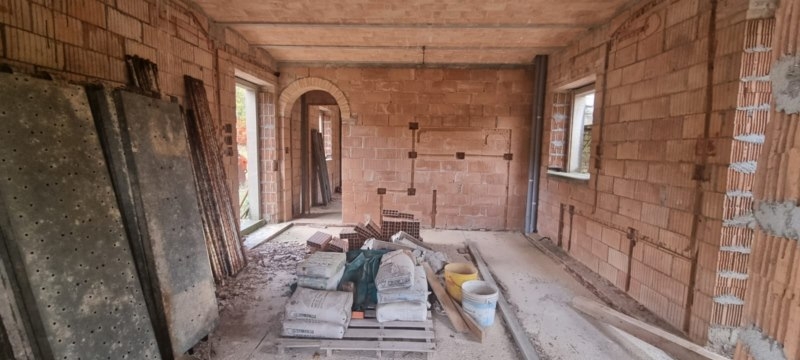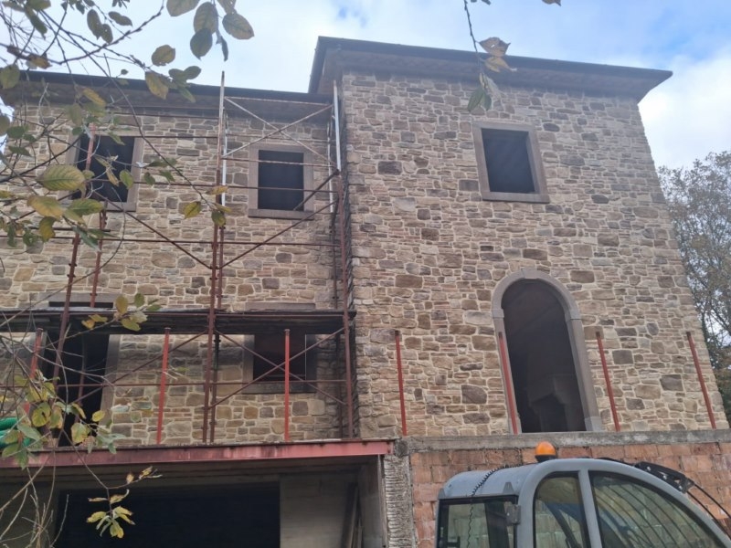 In toscana, Comune di Cortona, fabbricato in pietra di nuova costruzione, piano sotto grande vano con soffitti in mattone, possibile ricavare locale tecnico, taverna, o una camera con bagno per ospiti. Da una scala interna si accede al piano terra con soggiorno, cucina, terrazzo, scala accesso al piano primo, troviamo 2 camere e due bagni. L'immobile è fornito di energia elettrica, acqua da pozzo privato, 5000 mq. di terreno. Facilmente e comodamente raggiungibile. Spesa prevista per il completamento circa 105.000,00 euro. Aereopotro Perugia 55 km.Trestina 23 km.Cortona 16 km.